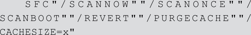 SFC命令是Windows操作系统中使用频率比较高的命令,主要作用是扫描所有受保护的系统文件并完成修复工作。该命令的语法格式如下。