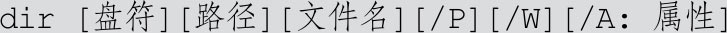 (3)/A:属性:仅显示指定属性的文件,无此参数时,dir显示除系统和隐含文件外的所有文件。可指定为以下几种形式: