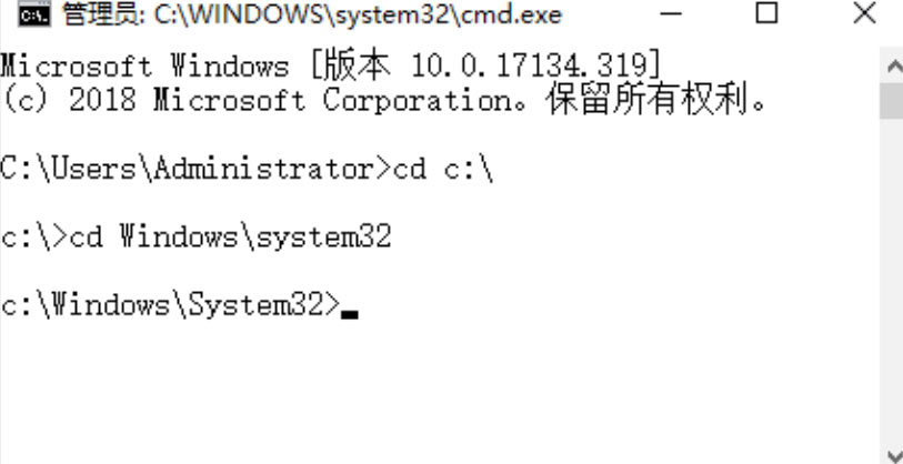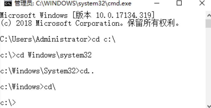例如,使用cd命令进入C:\Windows\system32子目录,并退回根目录的具体操作步骤如下。