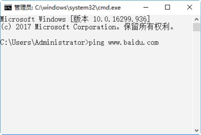 Step 02 单击“确定”按钮,即可打开“命令提示符”窗口,在其中输入ping www.baidu.com命令,如下图所示。