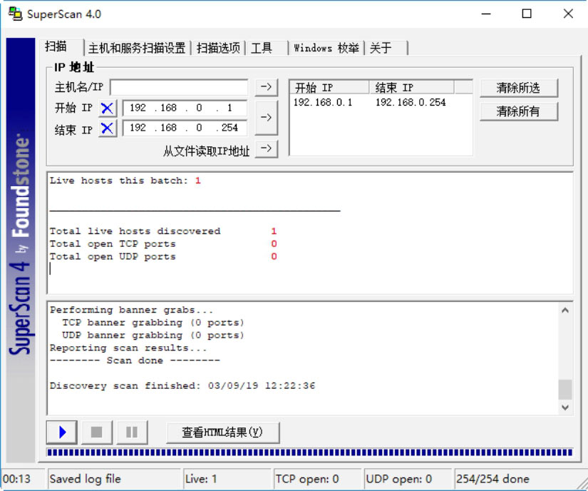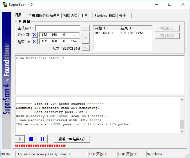 利用SuperScan扫描IP地址范围内的主机的操作步骤如下。