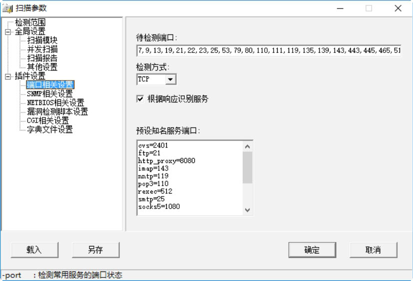 Step 08 切换到“插件设置”选项,并单击“端口相关设置”子选项,在其中即可设置扫描端口范围以及检测方式,如下图所示。X-Scan提供TCP和SYN两种扫描方式。若要扫描某主机的所有端口,则在“待检测端口”文本框中输入“1~65535”即可。