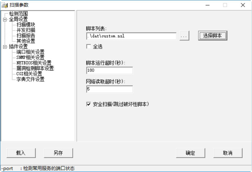Step 12 在选择检测的脚本文件之后,单击“确定”按钮,返回到“扫描参数”对话框中,分别设置脚本运行超时和网络读取超时等属性,如下图所示。