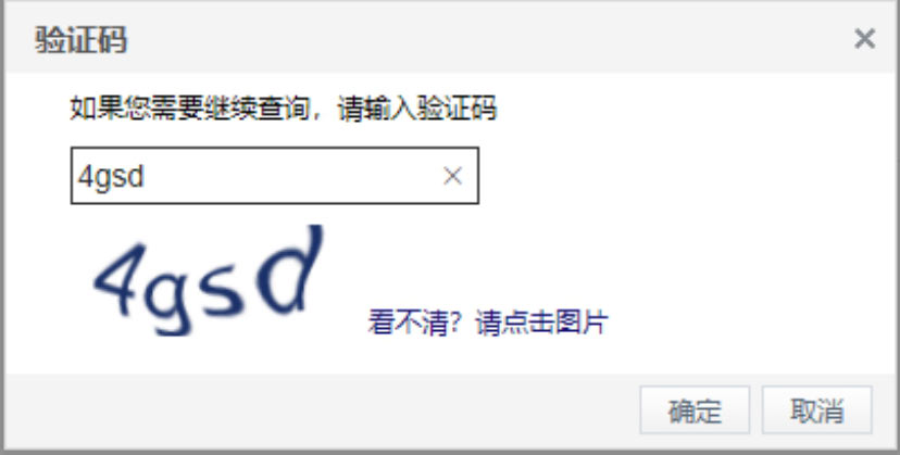 Step 03 单击“查询”按钮,打开“验证码”对话框,在“验证码”文本框中输入验证码,如下图所示。