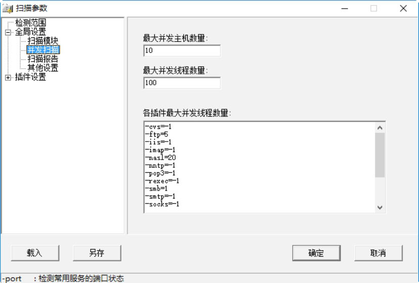 Step 05 由于X-Scan是一款多线程扫描工具,所以可以在“并发扫描”子项中设置扫描时的线程数量,如下图所示。