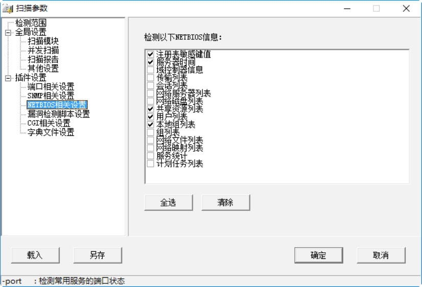 Step 10 切换到“NETBIOS相关设置”子项,在其中设置需要获取的NETBIOS信息类型,如下图所示。