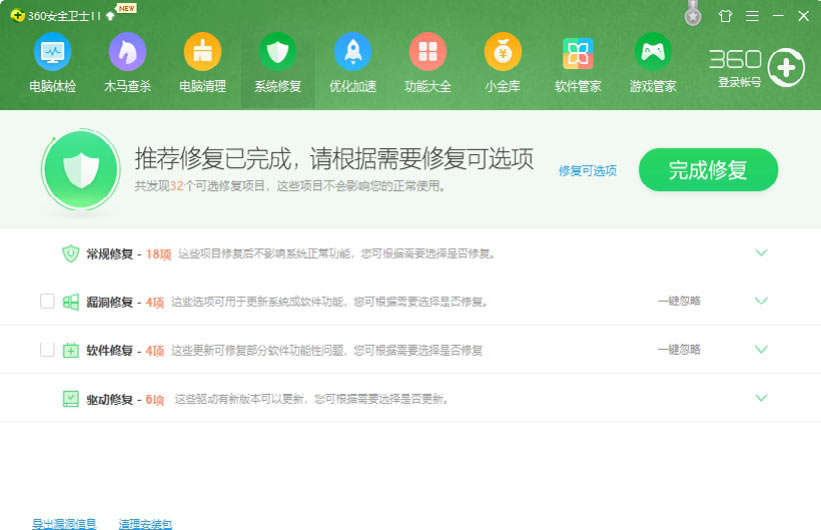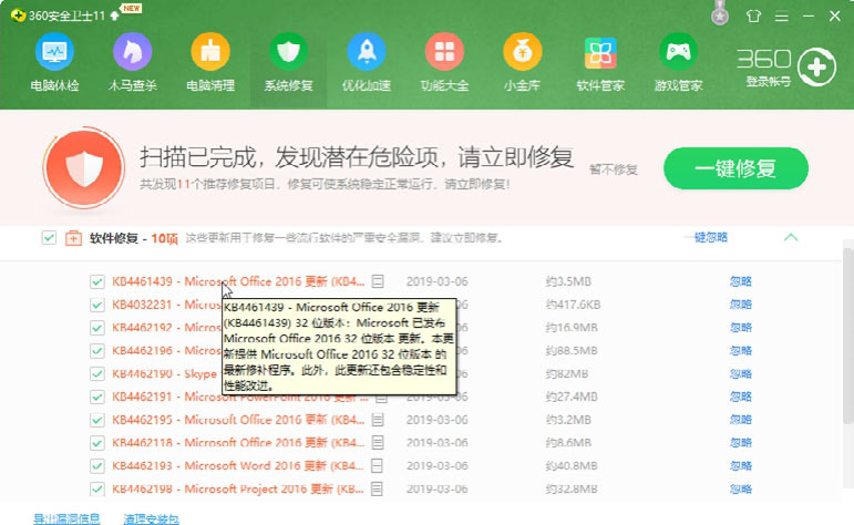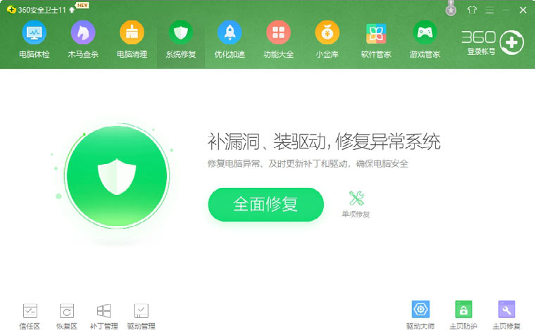 使用《360安全卫士》修复系统漏洞的具体操作步骤如下。