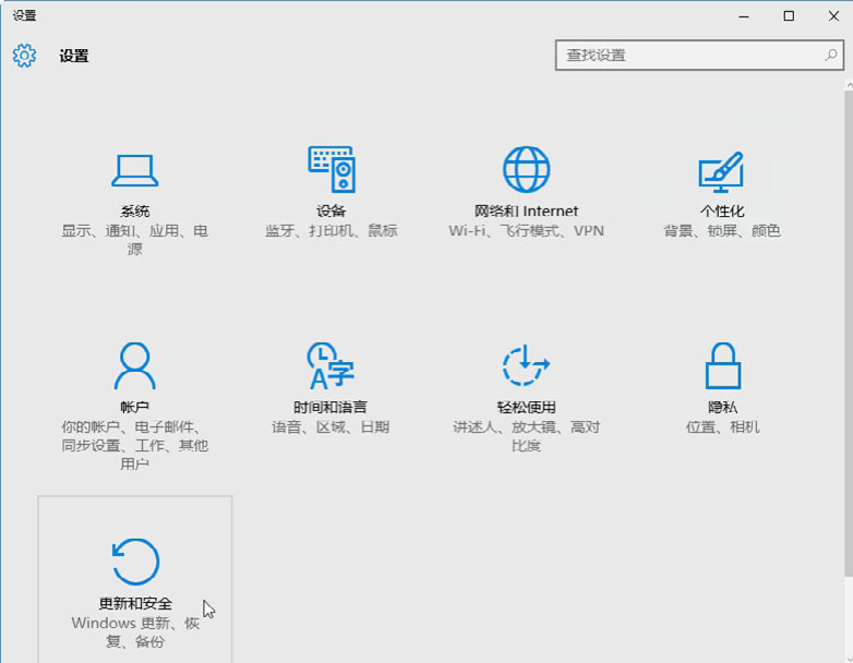 Step 02 打开“设置”窗口,在其中可以看到有关系统设置的相关功能,如下图所示。