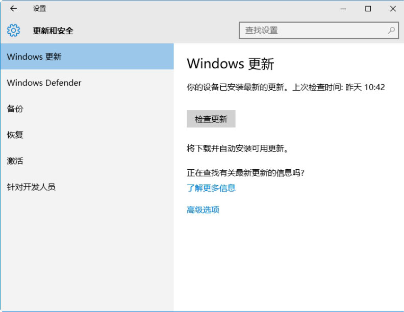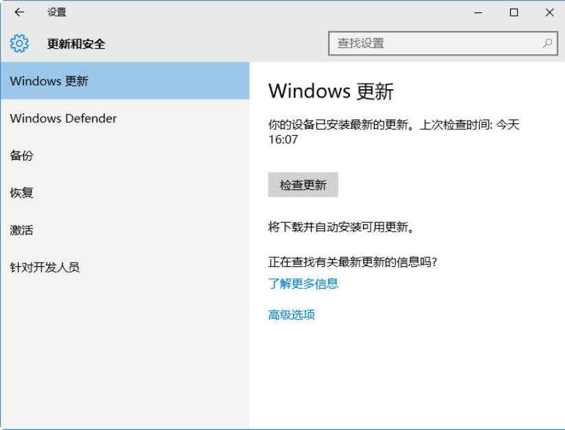 “Windows更新”是系统自带的用于检测系统更新的工具,使用“Windows更新”可以下载并安装系统更新。以Windows 10系统为例,具体的操作步骤如下。