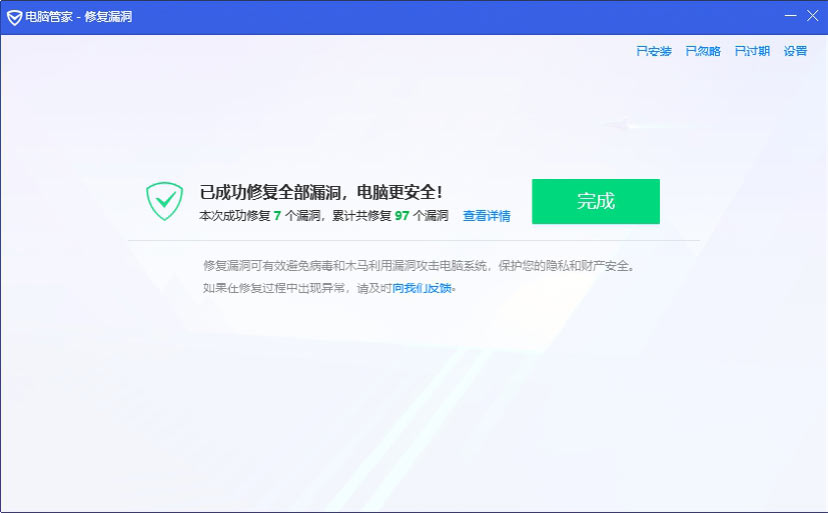 使用《腾讯电脑管家》修复系统漏洞的具体操作步骤如下。
