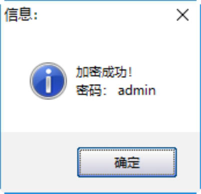 Step 02 单击“加密CMD”按钮,即可弹出成功加密提示框,且默认的密码是admin,如下图所示。