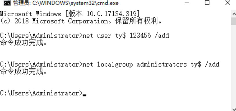 Step 03 在“命令提示符”窗口中输入net localgroup administrators ty$ /add命令,按Enter键,即可对该隐藏账号赋予管理员权限。