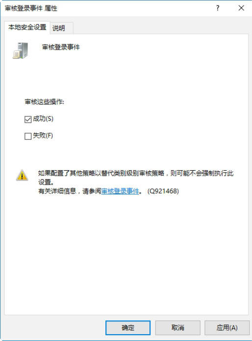 Step 04 按照上述步骤,将“审核登录事件”选项进行同样的设置,如下图所示。