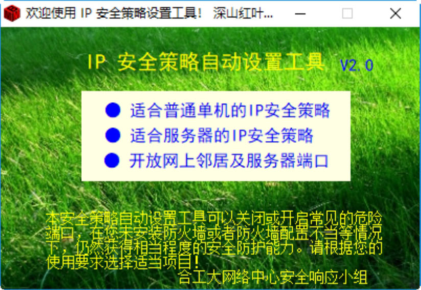 通过IP安全策略可以关闭各种系统中的危险端口,并对系统进行可靠的安全保护。“IP安全策略自动设置工具”是一个比较好用且功能多样的工具,为用户提供了3种网络类型,可以关闭和开启常见的危险端口,在计算机未安全防火墙时,可以有效地保护系统的安全。使用“IP安全策略自动设置工具”的具体操作步骤如下。