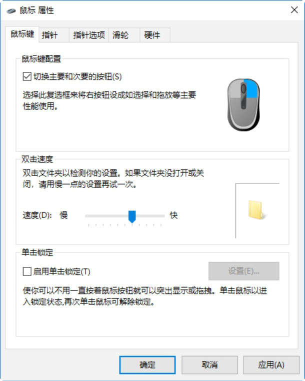 Step 02 弹出“鼠标 属性”对话框,选择“鼠标键”选项卡,然后选中“切换主要和次要的按钮”复选框,单击“确定”按钮即可完成设置,如下图所示。