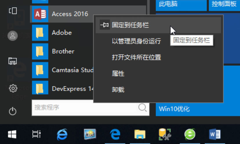 用户除了可以将程序固定到“开始”屏幕外,还可以将程序固定到任务栏中的快速启动区域,方便使用程序时,可以快速启动。