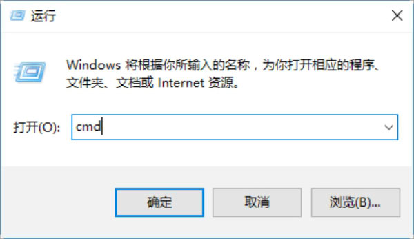Step 02 打开“运行”对话框,在“打开”文本框中输入cmd,如下图所示。