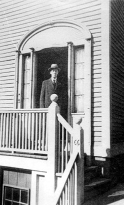 1919年6月30日(待考证),洛夫克拉夫特在位于普罗维登斯安吉尔大街598号的家门口。