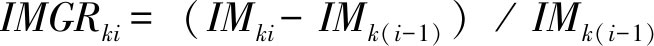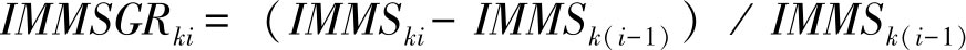 IMMSGR ki 为第 k 国第 i 期进口市场占有率增长率, IMMS ki 为第 k 国第 i 期进口市场占有率, IMMS k(i-1) 为第 k 国上一年同期进口市场占有率。
