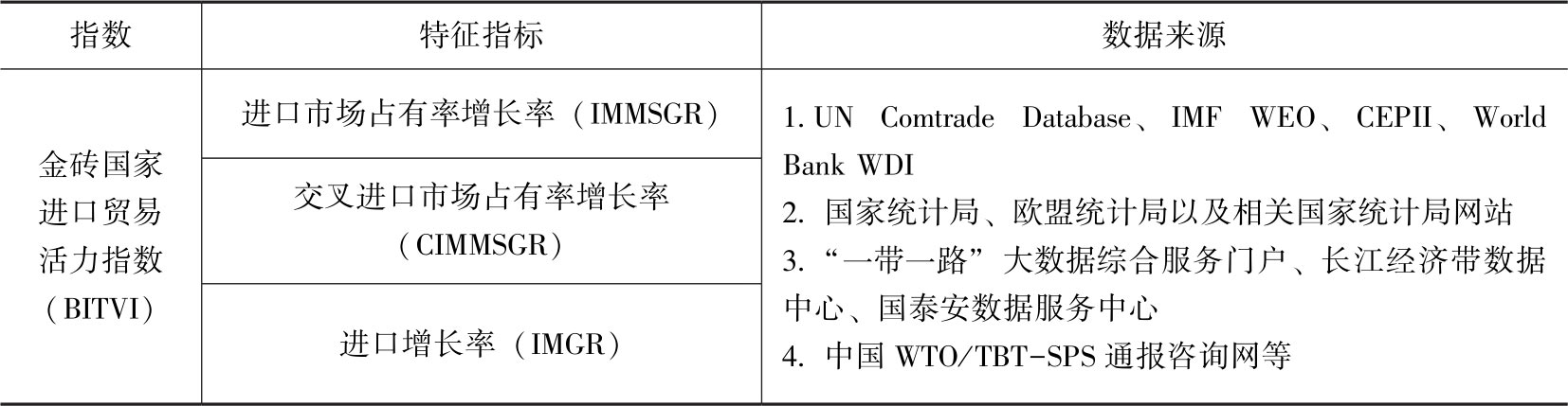 表2-10 金砖国家进口贸易活力指数特征指标及数据来源
