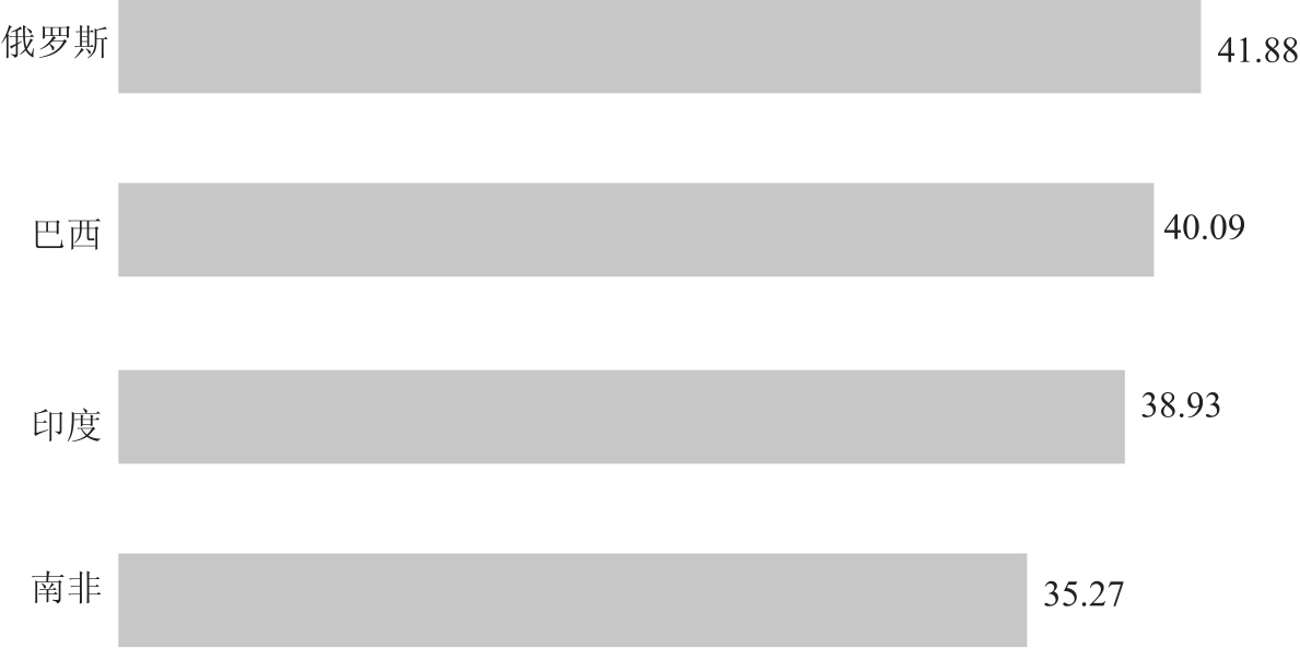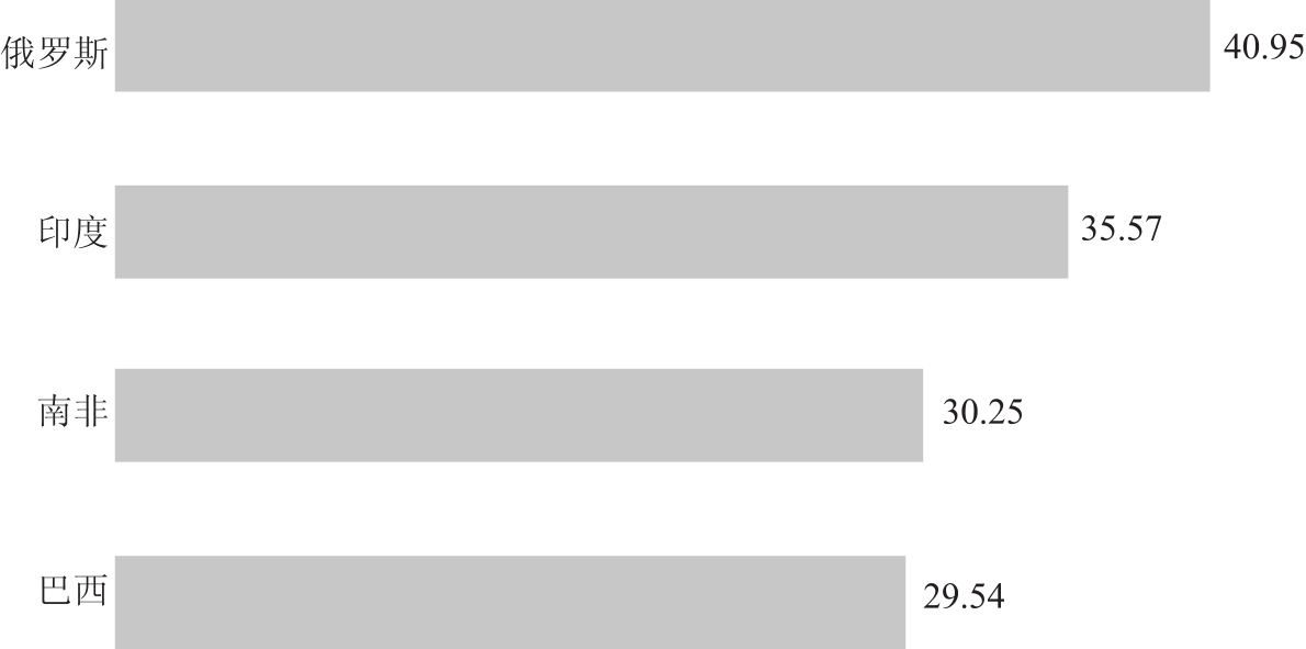 图2-2 金砖国家出口贸易活力指数排名条形图