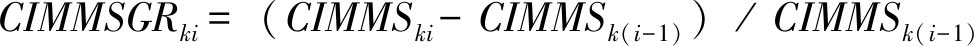 CIMMSGR ki 为第 k 国第 i 期交叉进口市场占有率增长率, CIMMS k i 为第 k 国第 i 期交叉进口市场占有率, CIMMS k(i-1) 为第 k 国上一年同期交叉进口市场占有率。