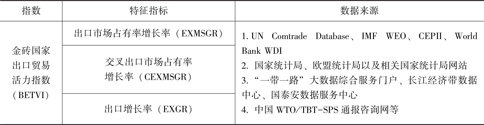 表2-1 金砖国家出口贸易活力指数特征指标及数据来源