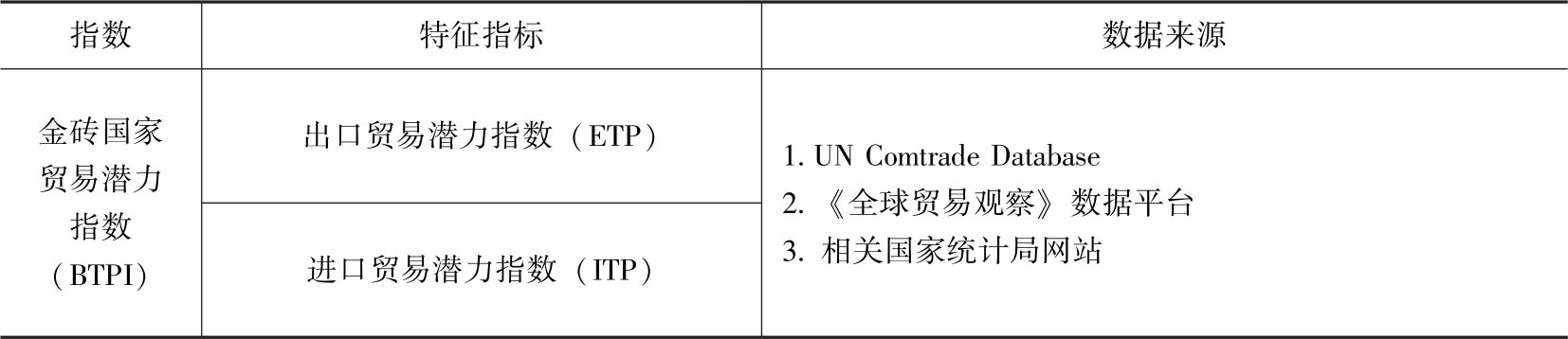 表3-1 金砖国家贸易潜力指数的特征指标及数据来源