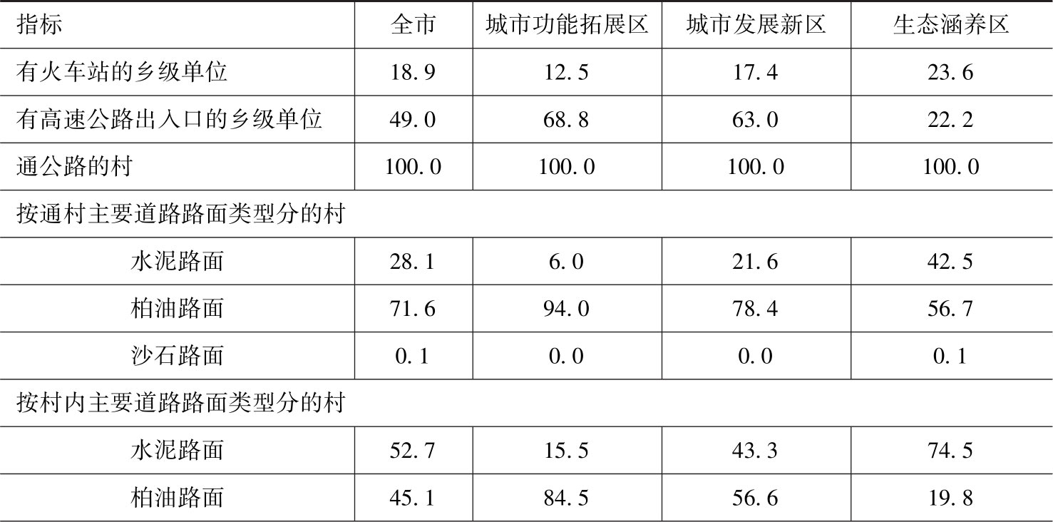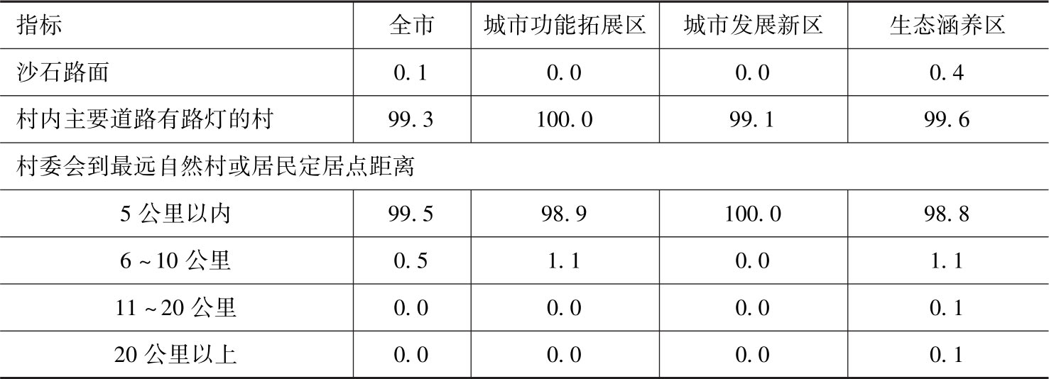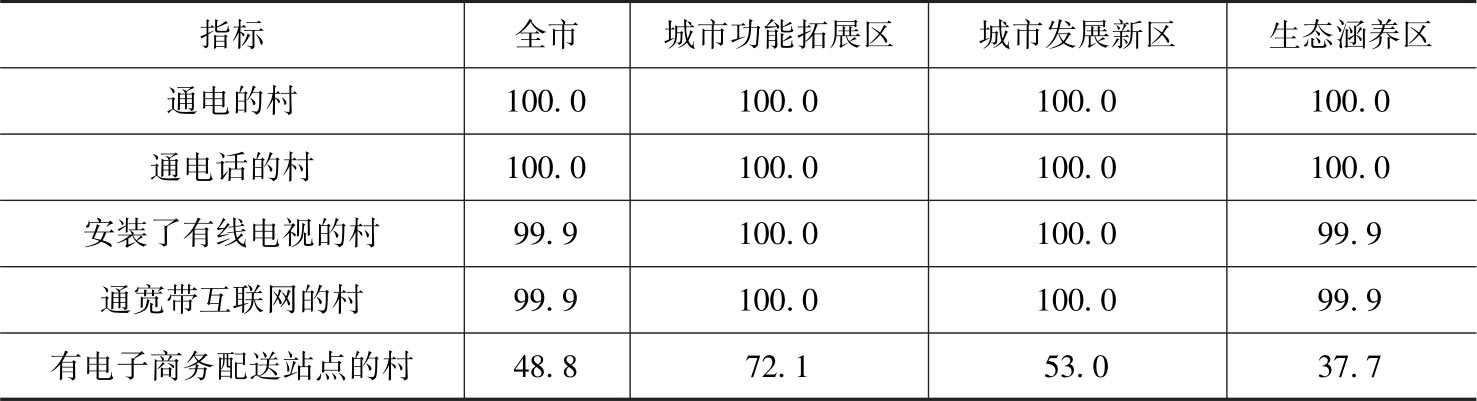 表1-3 北京市农村电力与通信设施基本情况(2016年) 单位:%