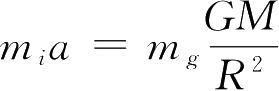 上式中的 m i 和 m g ,分别表示物体的惯性质量和引力质量,M是地球的质量, R 是物体距地心的距离, G 是万有引力常数, a 是物体的加速度。