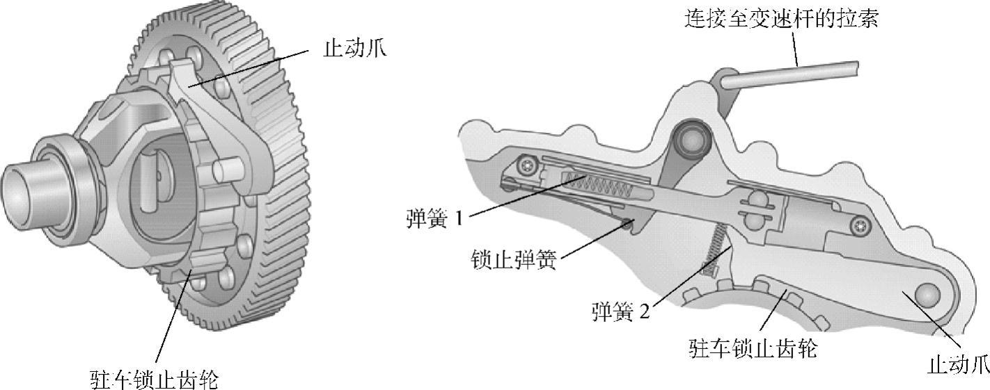 使车辆可靠地保持在驻车位置以及防止驻车制动器未拉紧时车辆无意间向前或向后移动,如图2-25所示。