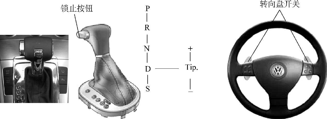 2)挡位模式。变速杆的操作方式和自动变速器变速杆一样,DSG变速器也提供Tiptronic手/自动一体挡位模式,如图2-3所示。变速杆位置如下:
