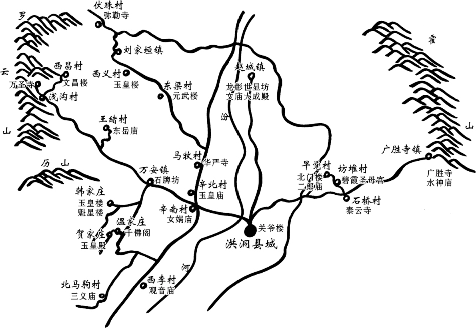 洪洞县北靠霍州、汾西,南接临汾,东连古县,西临蒲县,地处晋南太岳山脉和吕梁山脉之间的要冲地带,我不止一次来过洪洞县,但这里的文物古迹遗存实在是太丰厚了,于是我就乐此不疲地一次又一次来寻访。洪洞县南部有名胜曰洪崖古洞,洪洞县的名字就是来源于此,不过本地人却是读作洪洞(同)县。记得小时候,所能接触到的宣传媒介只有奶奶的小收音机和家里那台只能收到三个频道的小黑白电视,几乎没有选择余地的跟长辈们翻来覆去地听和看那些总是重播的节目,于是那句著名的京剧唱词“苏三离了洪洞县”真是早就听得烂熟了。