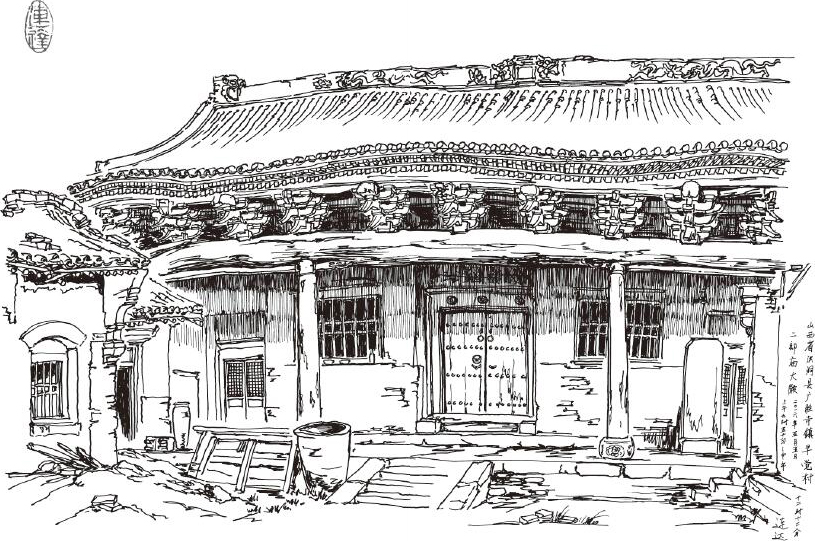 走进早觉村门洞,狭窄的巷子左侧有一座破败的大庙,苍老衰颓的悬山顶紧靠在路边,山面上弯曲的梁架和斑驳的老墙尽显岁月的久远和古拙质朴的味道。庙门面南开在院子的西南角上,只是一座寻常民居般的小门楼,门额上镌刻着清朝乾隆年间的匾额“衆靈垂應”。