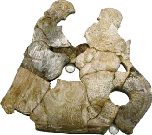 3-7:雅典发现的雅典娜、刻克洛普斯与盖亚的陶板,年代大约为公元前500年——450年。