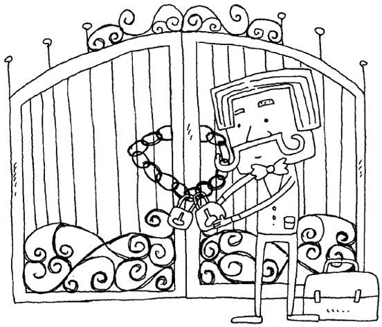 收拾完毕,主仆二人出了门,还给大门上了两道锁。