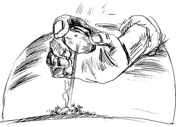 “当然没有,不过我现做了一个。”哈丁笑着回答。他向大家展示了这个简易的放大镜。哈丁和史佩莱取下手表上的两块玻璃镜片,中间灌点水,用土粘上玻璃片边缘,就成了一个放大镜。这小玩意儿把太阳光聚集在干燥的地苔上,不一会儿,地苔就燃烧了起来。