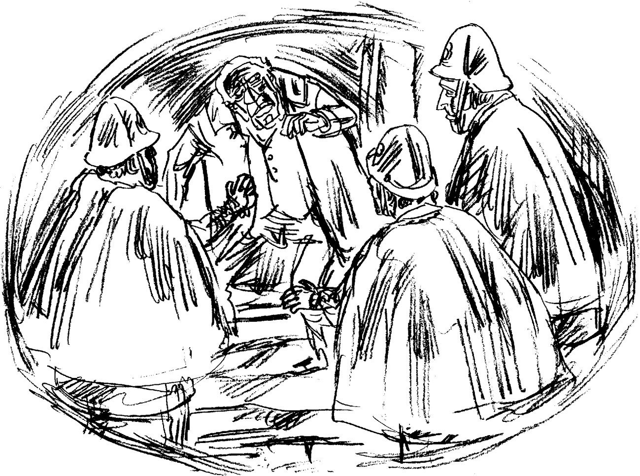 “你被怀疑在下诺伍德谋杀乔纳斯·奥德克先生,你被捕了。”