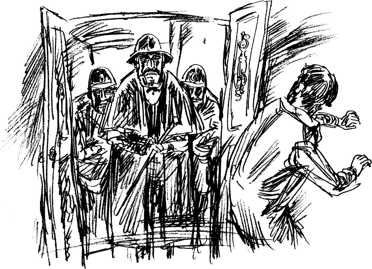 五分钟后,三个警察都到了。福尔摩斯让他们带上两大捆麦秸,上了有三间房间的顶楼,又让他们打来两桶水。大家都不知道他要耍什么花招,莱斯特雷德警长脸色转红,有些愤怒。福尔摩斯毫不在乎,让警士点火,并且让他们大喊“失火了,失火了”。奇迹发生了,走廊尽头的墙被打开了,从里面跑出一个瘦小的老头儿。