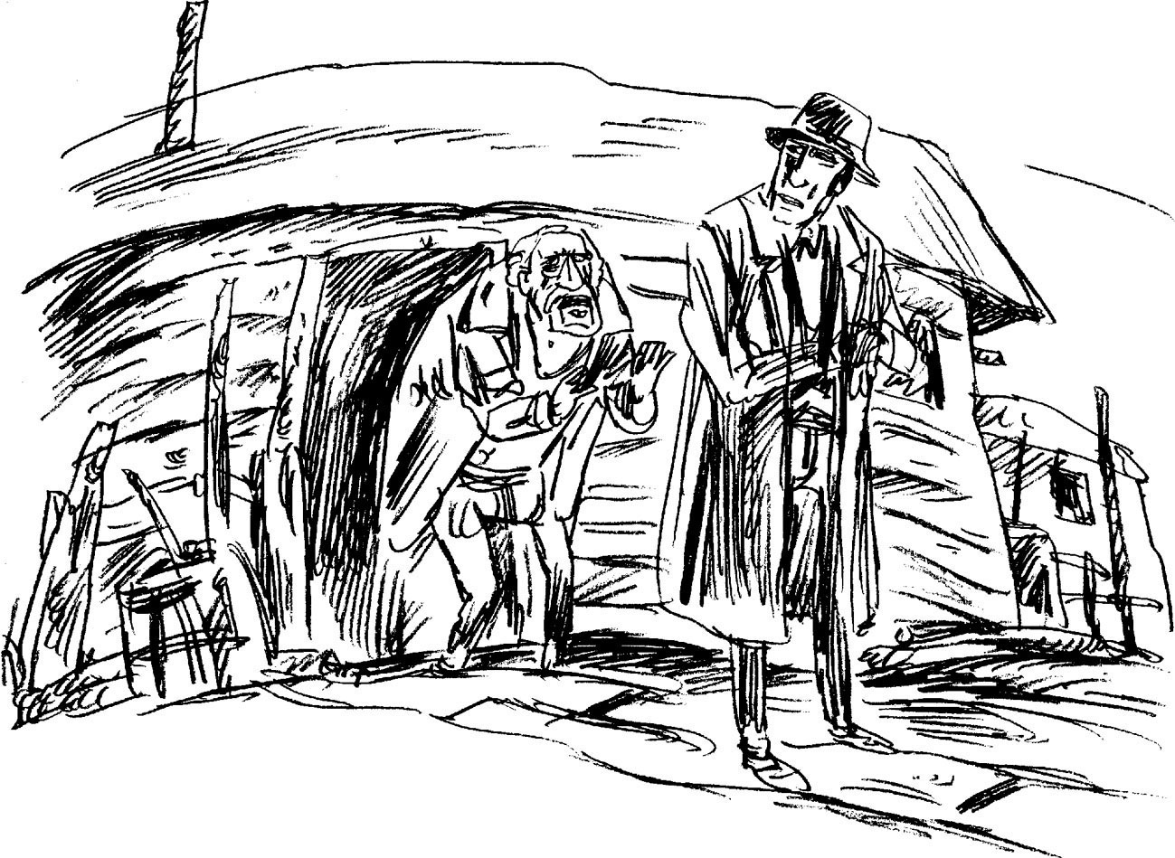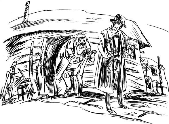 马厩里出来一个凶恶嘴脸的老头,恶狠狠地说:“你们是干什么的,赶紧走。”
