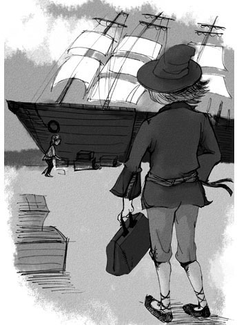 一想到回家,我感到非常羞耻,不仅羞见双亲,也羞于见别人。我就这样昏昏沉沉地过了好几天,不知道今后该走什么样的生活道路。过了些日子,对灾祸的记忆逐渐淡忘,原来动摇不定的归家念头也随之日趋淡薄,我又重新向往起航海生活来了。于是我开始了不幸的冒险事业,我踏上了一艘驶往非洲海岸的船。用水手们的话说——到几内亚去!