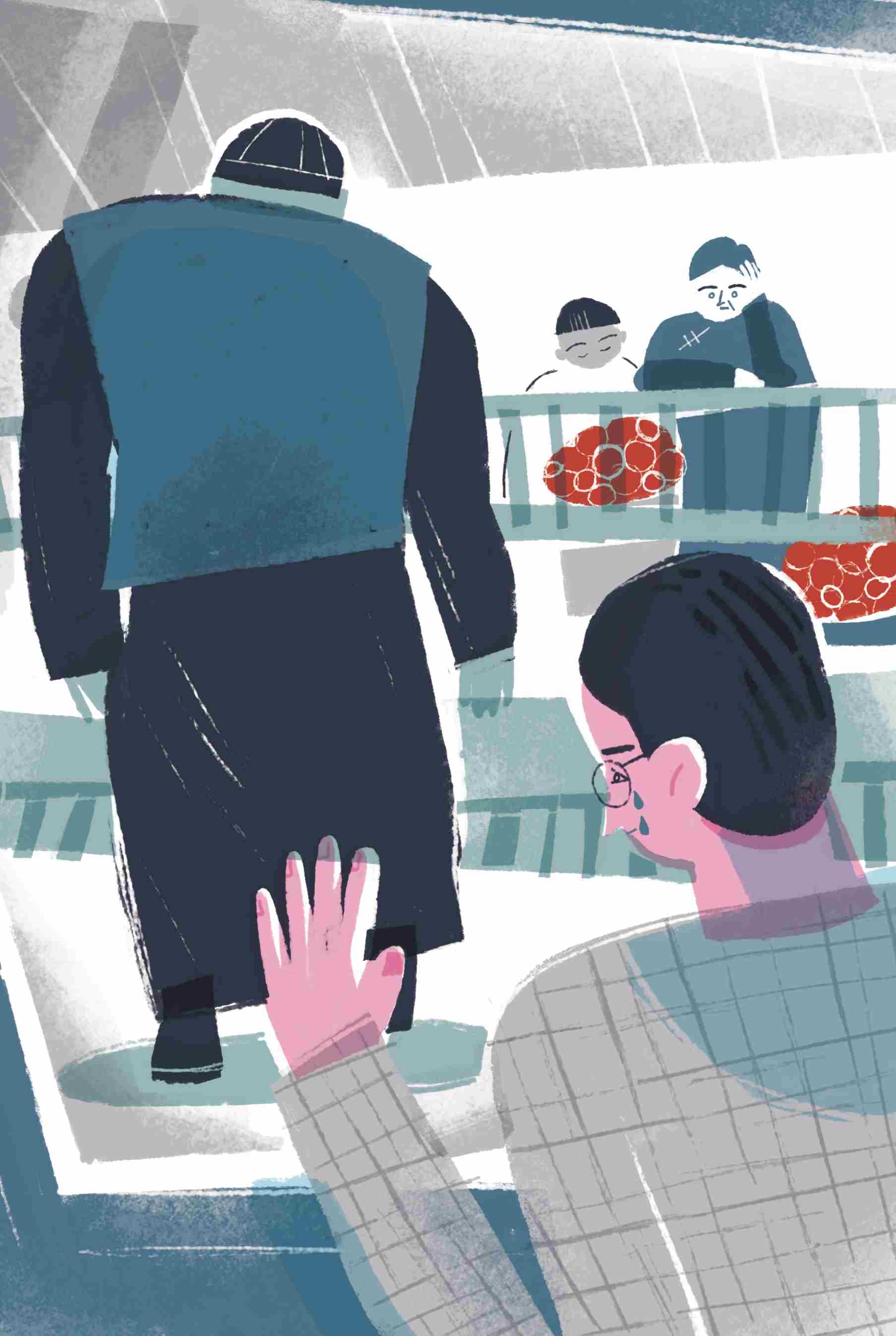 我们过了江,进了车站。我买票,他忙着照看行李。行李太多了,得向脚夫行些小费,才可过去。他便又忙着和他们讲价钱。我那时真是聪明过分,总觉他说话不大漂亮,非自己插嘴不可,但他终于讲定了价钱,就送我上车。他给我拣定了靠车门的一张椅子,我将他给我做的紫毛大衣铺好座位。他嘱我路上小心,夜里要警醒些,不要受凉。又嘱托茶房好好照应我。我心里暗笑他的迂;他们只认得钱,托他们直是白托!而且我这样大年纪的人,难道还不能料理自己么?唉,我现在想想,那时真是太聪明了!