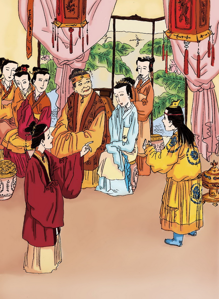 ◎黛玉略换了件新鲜衣服,含羞带笑地出来见了众人。湘云、李纹、李纨都让她坐首座,黛玉只是不肯。