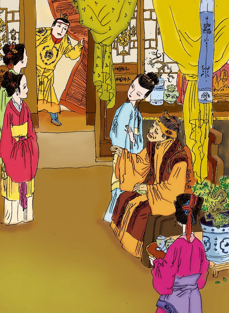 ◎正说话间,只听外面一阵脚步声。丫头进来说:“宝玉来了。”