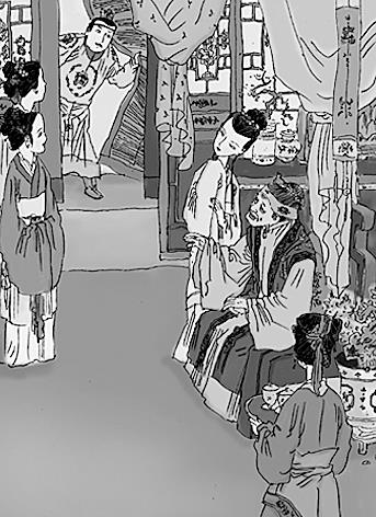正说话间,只听外面一阵脚步响。丫头进来说:“宝玉来了。”