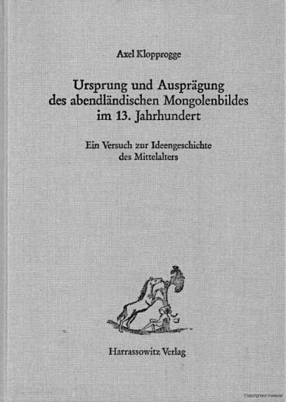20世纪90年代初,当我在德国波恩大学读书的时候,曾经读到过一本书,它的主书名叫作《十三世纪西方蒙古形象的来源与影响》( Ursprung und Ausprägung des Abendländischen Mongolenbildes im 13. Jahrhundert ),而其副书名是《[欧洲]中世纪思想史的一个尝试》( Ein Versuch zur Ideengeschichte des Mittelalters ),这本书是亚琛(Aachen)工业大学哲学系1990年度的一篇博士论文,由德国著名的东方[亚洲]研究出版社Harrassowitz Verlag于1993年出版,作者是Axel Klopprogge。记得这本书出版后得了奖,获得了很多好评,故引起了我的注意,当时读了以后觉得很受触动和启发,至今记忆犹新。这本书的主题讲的是欧洲人是如何期待、理解和接受蒙古西征,或者那个被人称为“蒙古旋风”的历史事件的。蒙古对欧洲的征战发生在1241年,延续时间不长,蒙古西征最远点也不过是达到了波兰和德国边境地区的Liegnitz和Schlesien,于此逗留的时间一共也不到两周,果真是一场转瞬即逝的风暴,可它在欧洲思想史上却留下了长期和深刻的影响。