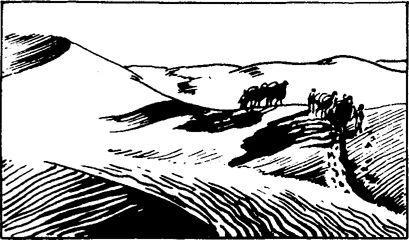 在这一带,斯坦因发现了一些古代垦殖和形制草率的石屋遗迹;同样,在疏勒方面伊尔克什坦木和上面高度相同的处所,也找到垦殖的遗迹。因而可以想见古代商人在这条横越世界屋脊的大路上,除去阿拉山最高部分七○哩长的那一段以外,沿途一定可以找到给养和安身之所。为了篇幅所限,我不能再描写古代中国商人爬过帕米尔的情形。总之,他们必须经过最大的艰苦,才能越过这作为东西两个世界之障壁的帕米尔,而达到有阡陌井然的麦田和果树林的今日的费尔干,古代的大宛。
