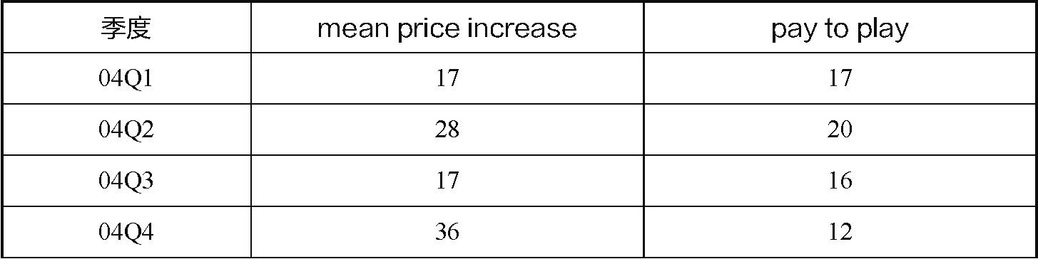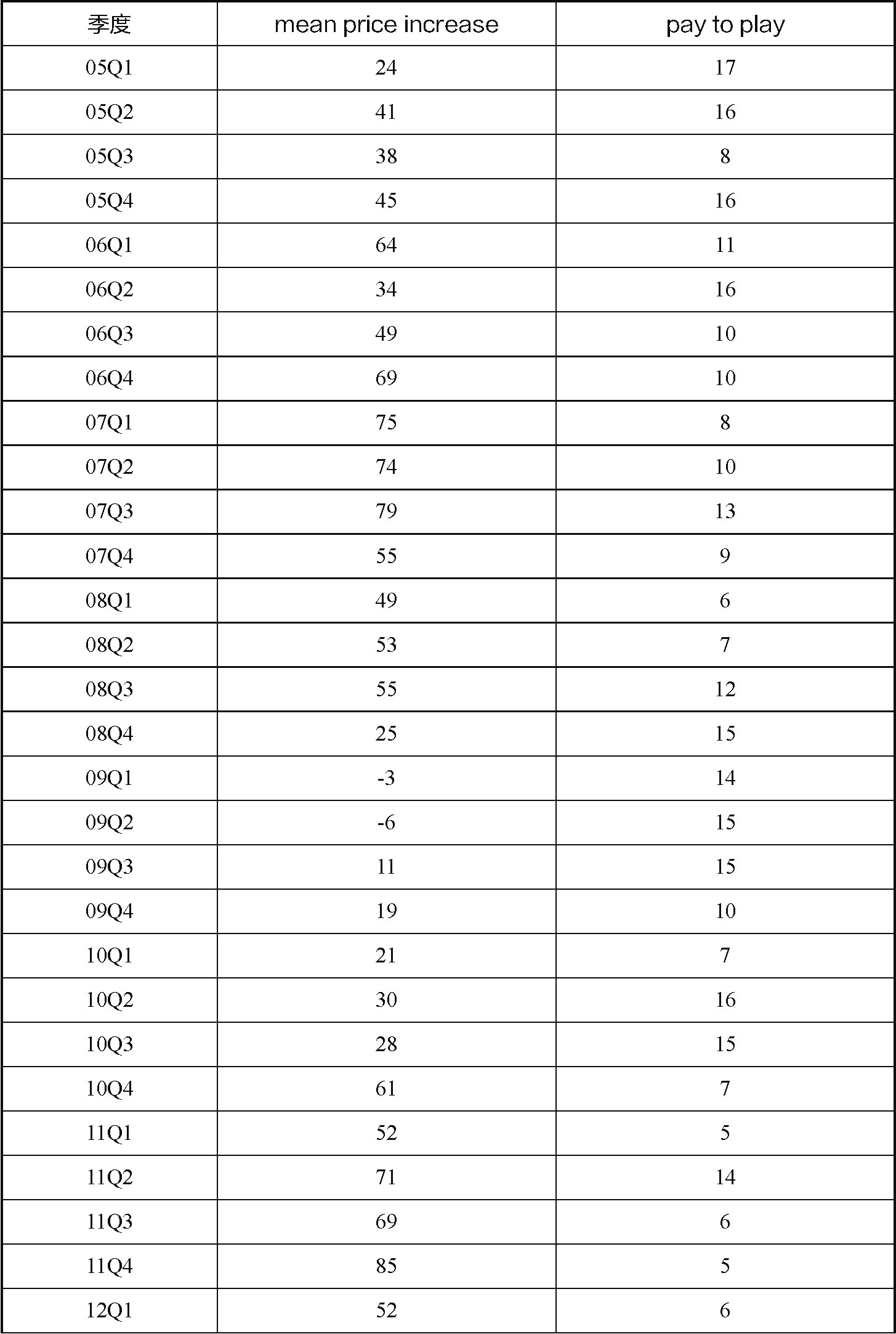 我们再来看融资价格变化率与各类VC投资条款使用频率变化的联系,以下六幅图(图4~图9)分别展现了这些联系,其中浅灰色曲线是后一轮融资相对前一轮融资价格增长百分比的平均值。此外,表2也详细记录了这十数年间硅谷风投融资价格的变化情况。