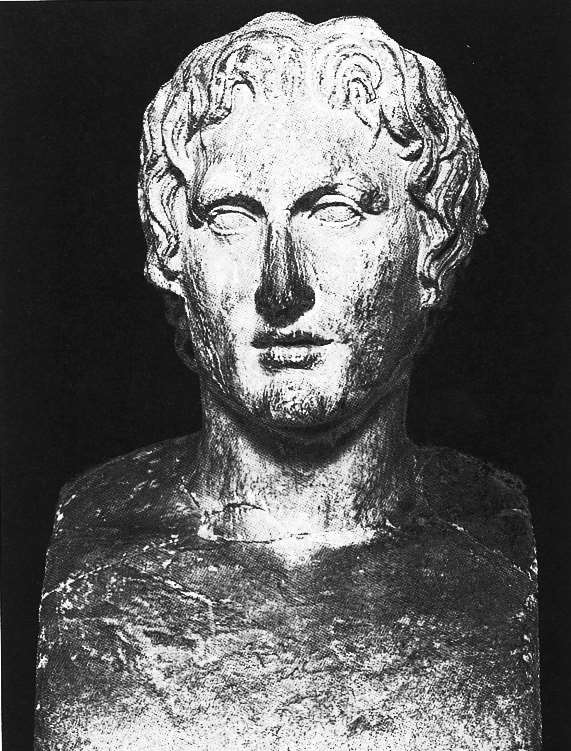 各种雕像之中,最能表现亚历山大外貌特征的要属利西波斯的作品,连亚历山大本人也只让他来为自己创作雕像。因为这位艺术家准确地抓住了亚历山大微微左倾的头部和深邃的眼神这两个特征。而这两点也是在亚历山大身后,他的后继者和朋友们所竞相模仿的。(第四章)