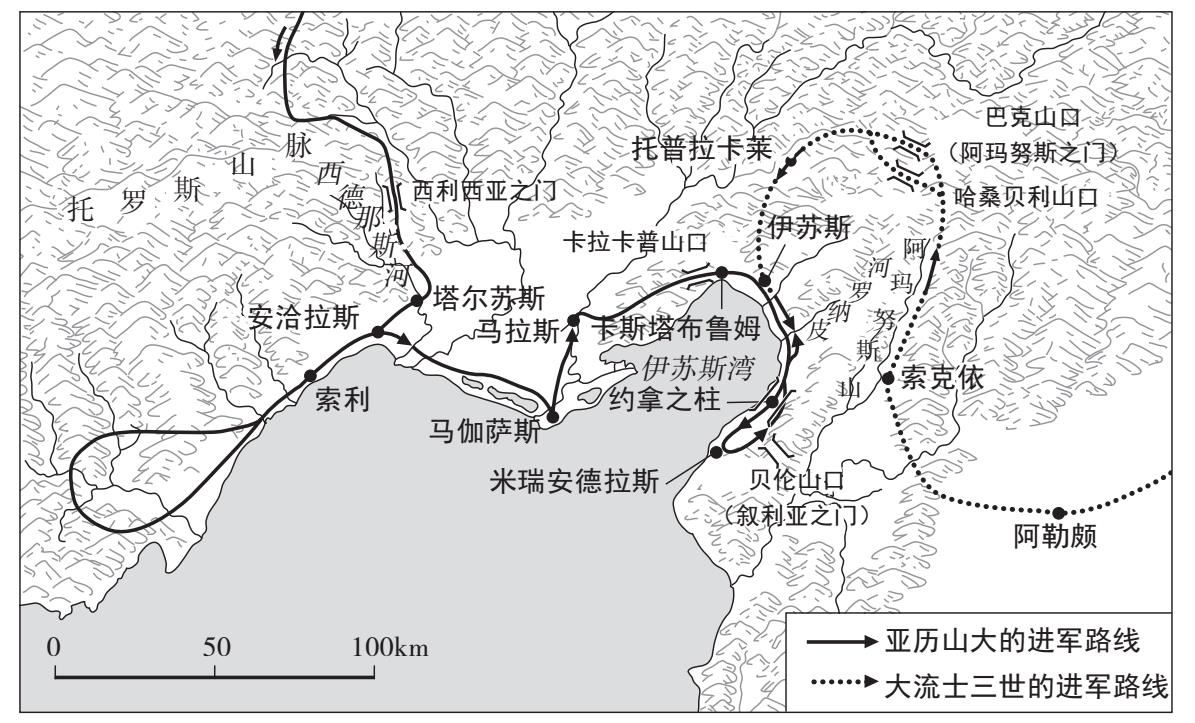 两军到达伊苏斯战场的路线
